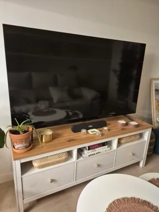 Mueble de TV de la serie Hemnes de Ikea 148x47x57 cm Se cambiaron los tiradores originales por los que se ve en la imagen. El mueble a nivel visible esta en perfecto estado, sin embargo como se aprecia en la segunda imagen tiene una serie de desperfectos por la parte interior que no afectan al visual del mueble ni a su funcionamiento