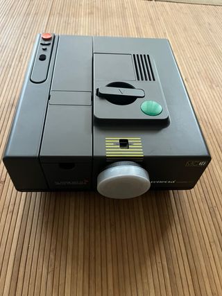 Proyector de diapositivas Rollei en color gris plata, de apariencia clásica y elegante. Ideal para volver a ver esas diapositivas que andan en algun cajón. - Temposizador ajustable automático - Marca reconocida: Rollei. - Objetivo Neidosmat. - Funcionando perfecramente