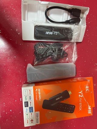 Disfruta de tus aplicaciones favoritas con este TV Stick. - Modelo M98 Y2. - Sistema Android TV. - Memoria de 2GB RAM y 16GB de almacenamiento.