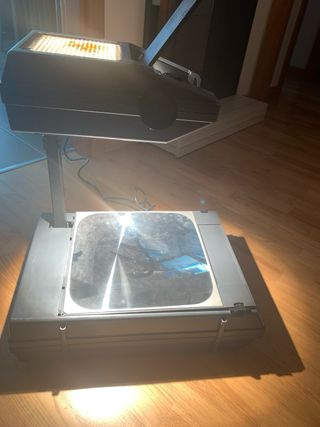 Proyector de transparencias en color gris. Ideal para presentaciones. - Diseño compacto y portátil. - Brazo extensible para ajustar la altura. - Superficie de proyección amplia.