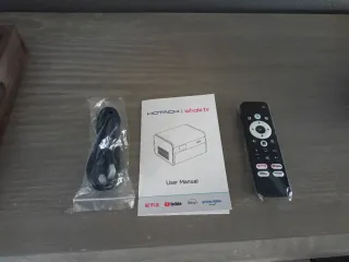 Proyector LED FHD de la marca Hotack(unicview).con 600 ansi lumens. -android 11 con app oficiales como Netflix - Incluye mando a distancia. - Incluye manual de usuario. - Incluye cable de alimentación. -incluye cable hdmi