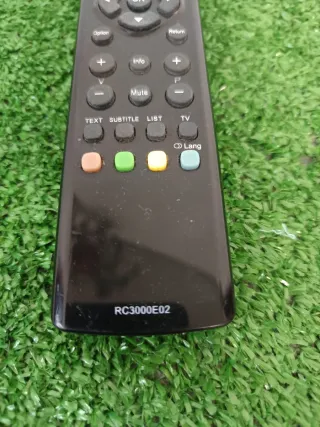 Mando a distancia para televisores TCL. Este control remoto es negro y tiene un diseño ergonómico. - Botón de encendido naranja. - Teclado numérico del 0 al 9. - Botones de navegación (arriba, abajo, izquierda, derecha) y OK. - Botones de función: Source, Menu, Exit, Zoom, Return, Option, Info, Mute, Text, Subtitle, List, TV, Lang. - Botones de colores (rojo, verde, amarillo, azul). Está usada y en buen estado‼️ 🔴 Más artículos en mi perfil. 📤 Envío rápido. Ref. A2.56