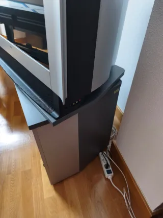 Vendo soporte para televisión con ruedas y base de cristal negro, ideal para mover tu TV cómodamente entre estancias (salón, dormitorio, oficina, aula, etc.). Diseño moderno, resistente y muy práctico. Características: ✔️ Base de cristal negro elegante y estable ✔️ Ruedas para fácil movilidad ✔️ Compatible con la mayoría de televisores ✔️ Estructura sólida y segura Perfecto para presentaciones, hogar u oficina. En muy buen estado y listo para usar.