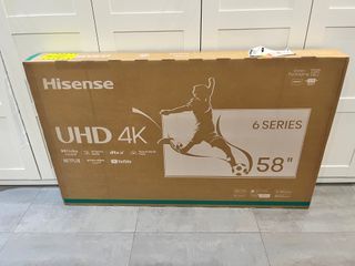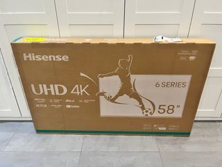 Televisor Hisense 58 pulgadas, 4K UHD, serie 6. Modelo nuevo sin abrir. - Resolución UHD 4K. - Smart TV con acceso a apps como Netflix, Prime Video y YouTube. - Compatible con Dolby Vision y DTS:X. - Incluye modo juego (Game Mode Plus) y modo deportivo (AI Sports Mode).