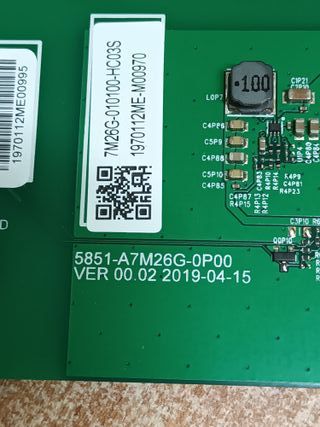 PLACA MAIN, 5851-A7M26G-0P00, DE OK ODL40662FN-TIB referencia taller, M-29, precio NO negociable NOTA: Todos nuestros productos están desmontados de tv con problema de rotura de pantalla o avería en otras placas u otras partes de la televisión, somos profesionales y tenemos taller en salamanca. Le enviamos la placa que esta en las fotos, recuerde que es usada y puede tener algo de desgaste, zonas con manchas, incluso polvo o suciedad, no modificamos las placas, las enviamos tal cual se desmontan revisen bien todas las fotos del anuncio que se ven todas las referencias de la placa, que no admitimos devolución del producto