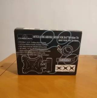 Soporte de pared para televisión. - Fabricado en plástico negro. - Diseño articulado para ajustar el ángulo.