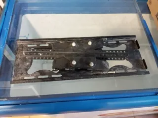 Soporte de pared para TV, con diseño extensible y acabado en color negro. - Mecanismo de ajuste. - Placa de montaje con orificios.