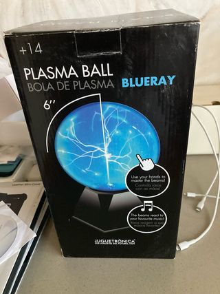 Bola de plasma interactiva de 6 pulgadas. - Controla los rayos con tus manos. - Los rayos reaccionan a la música. - Edad recomendada: +14 años.