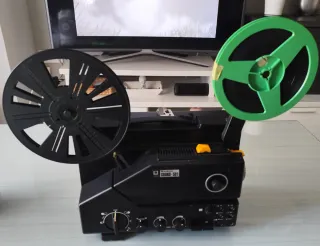 Proyector de películas Super 8. - Incluye carrete negro. - Incluye carrete verde.
