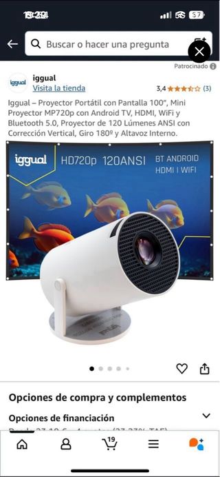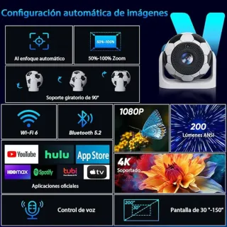 Vendo proyector HD 1080p con soporte 4K. Diseño balón de futbol. Es totalmente nuevo. Nunca se ha usado. Ideal para regalar. - Calidad HD 1080p con soporte 4K - Android TV - Wifi 5 - Bluetooth 5.4 - Rotación 180 grados - Compatible con HDMI, TV Stick, USB, Laptop - Altavoz stéreo inmersivo