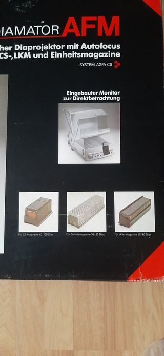 Proyector de diapositivas reflecta DIAMATOR AFM. Proyector de diapositivas automático con autofoco. Modelo: Diamator AFM Compatible con cargadores CS-, LKM y de revistas estándar. Permite la proyección desde monitor o una pantalla. Incluye manual de instrucciones.