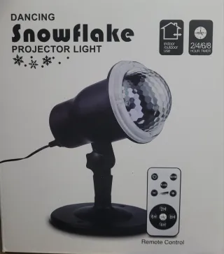 Totalmente nuevo. Proyector de luz con diseño de copos de nieve, ideal para crear un ambiente festivo. - Apto para uso interior y exterior. - Temporizador de 2/4/6/8 horas. - Incluye control remoto para ajustar funciones.