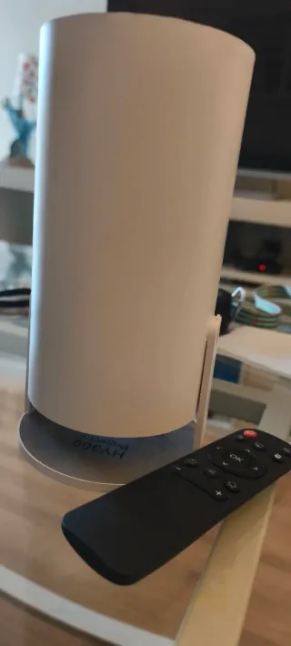 Proyector portátil con sistema Android integrado. Su diseño cilíndrico y acabado en blanco lo hacen un dispositivo elegante. - Sistema operativo Android. - Conexión Wi-Fi. - Puerto HDMI.