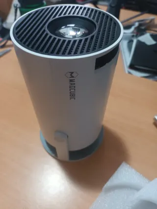 Proyector portátil Magcubic HY320 Mini en color negro y gris. - Diseño compacto y moderno. - Ideal para entretenimiento en casa o presentaciones. - Con imagen auto ajustable y buen sonido. - Interfaz android, con una buena y sencilla conexión bluetooth y acceso a multitud de aplicaciones (tiene AppStore). - Conexiones USB y HDMI. - Tiene entrada de rosca en la plataforma para poder colocarlo en un trípode u otro soporte. La causa de la venta es que me han regalado uno igual.