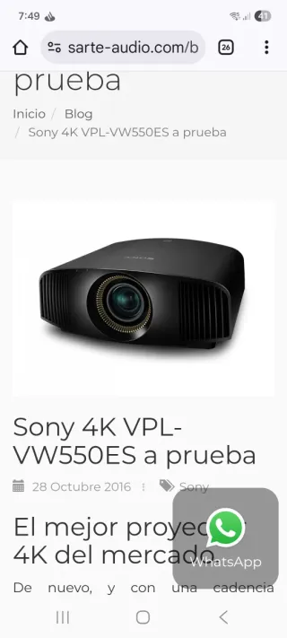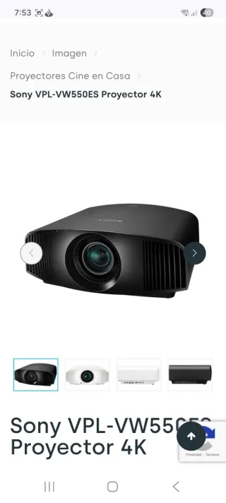Proyector de alta gama Sony VPL-VW550ES. - Resolución 4K. - Color negro.