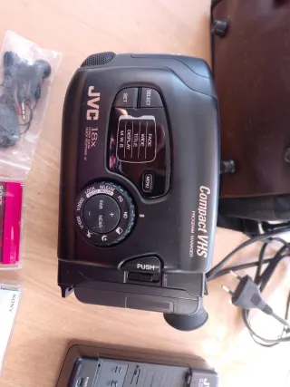 Videocámara JVC Compact VHS GR-AX370EG con accesorios. - Incluye videocámara. - Cargador de batería. - Batería. - Bolsa de transporte. - Cables. - Auriculares. - Cintas VHS-C. En buen estado, hago envíos.