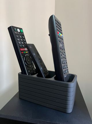 Organizador de mandos de tv minimalista impreso en 3D disponible en varios colores.