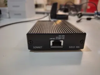 Adaptador de red Sonnet Solo 10G con conexión USB-C. Permite conectar redes de alta velocidad sin ventilador y sin ruido, disipador integrado en el diseño. Dispongo de 2, puedo dejar a 130 cada uno - Puertos: 1x RJ45 10GbE - Marca: Sonnet - Modelo: SOLO 10G