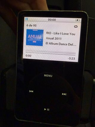 Reproductor de música iPod Classic Video de 5a generación de 30GB y color negro. Sin caja, señales evidentes de uso. No dispongo de auriculares, ni cable de carga. (se ha comprobado el funcionamiento con un cable de reproductor de coche). Producto con 20 años, no creo que la batería esté en su mejor época. Funciona correctamente y la click wheel funciona perfecta. No envío, únicamente recogidas en mano.