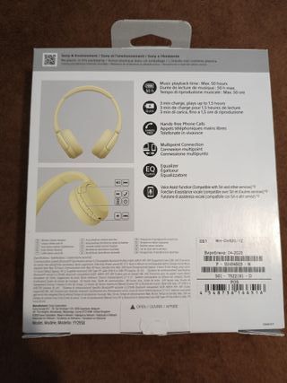 Auriculares inalámbricos Sony WH-CH520 en color amarillo. - Tecnología 360 Reality Audio. - Autonomía de 50 horas. - Conexión Multi Point.
