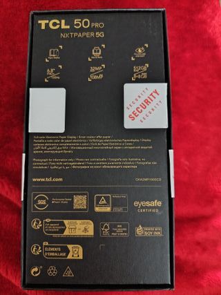 Teléfono móvil TCL 50 PRO NXTPAPER 5G en color negro. Cuenta con una pantalla Full-color Electronic Paper Display. 512GB Memoria interna. 16 GB RAM. Camara 108mp - Galardonado con el iF DESIGN AWARD 2024.