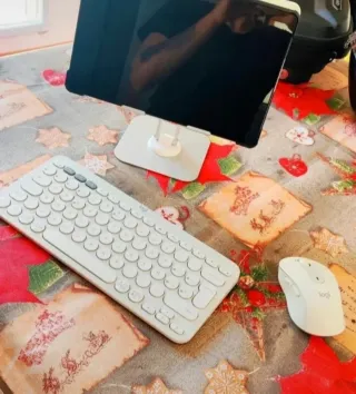 Conjunto de teclado y ratón inalámbricos Logitech. - Diseño elegante en blanco y gris. - Ideal para uso diario y profesional.