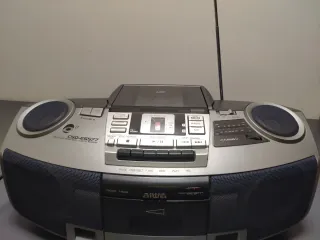 Radio cassette Aiwa con reproductor de CD integrado. Un clásico para disfrutar de tu música. - Función de auto reverse en el casete. - Radio AM/FM estéreo. - Pantalla digital. - Antenas retráctiles.