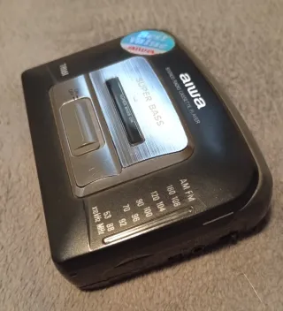 Reproductor de cassette y radio portátil de la marca AIWA. Un dispositivo clásico para disfrutar de tu música y emisoras favoritas no negociable. - Diseño compacto y ligero. - Sintonizador de radio AM/FM. - Ecualizador de graves y agudos.