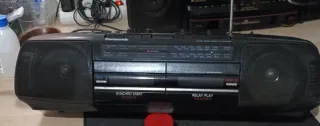 Grabadora de radio cassette Sanyo Twin con doble pletina. - Diseño compacto y portátil. - Altavoces estéreo integrados. - Función Continuous Play para reproducción ininterrumpida. - Radio AM/SW/FM estéreo.