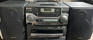 Equipo de sonido Aiwa con reproductor de CD, doble pletina de cassette y radio. - Diseño compacto y elegante. - Altavoces Aiwa incluidos.