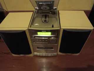 Sistema de audio compacto Sanyo con radio, reproductor de CD y casete. - Diseño en color beige y plateado. - Altavoces estéreo incluidos.