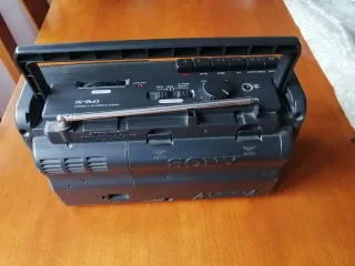 Radio cassette Sony con doble cassetera y reproductor de CD. - Reproductor de CD. - Doble cassetera para grabar y reproducir. - Permite hacer copias de cassette - Radio AM/FM. - Asa para transporte.