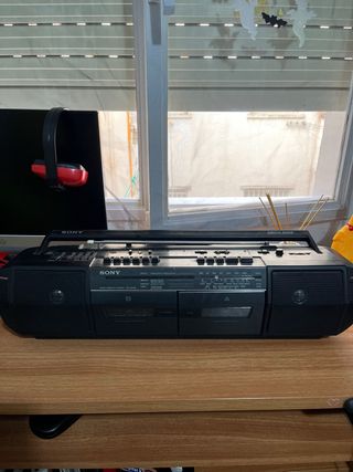 Radio Boombox vintage de la marca Sony, un clásico para disfrutar de tu música. - Diseño portátil con asas. - Reproductor de CD. - Doble pletina de cassette. - Sintonizador de radio AM/FM. NO ENVIOS