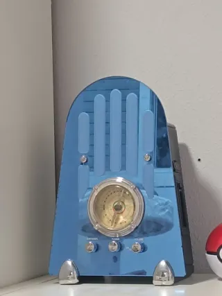 NEGOCIABLE IDEAL REGALO Radio de estilo vintage con un diseño retro y llamativo. Su acabado brillante le da un toque especial. - Diseño curvo superior. - Dial circular para sintonizar. - Mandos frontales. - Patas cromadas. -Reproductor de cassette Solo tiene un par de marcas de uso que apenas se ven delante, a los lados. Funciona perfectamente, reproductor de cassette incluido.