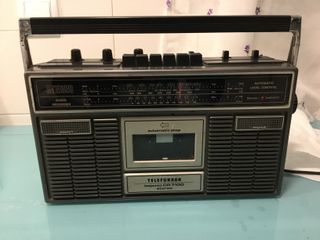 Radiocasete vintage Telefunken CR 7100 con sintonizador FM/AM y función estéreo. Un clásico para disfrutar de la música. - La Radio funciona perfectamente FM con un sonido nostálgico del que ya no son capaces los nuevos altavoces y una muy buena sintonización. - El cassette ("no funciona") posiblemente necesite cambiar las gomas -Microfono incorporado en cada altavoz - Se envía con cable de alimentación - a pesar de estar en buenas condiciones tiene señales lógicas del paso del tiempo - Diseño portátil con asa. - Compartimento para cassette. - Indicador de nivel de control automático. - Precio no negociable.