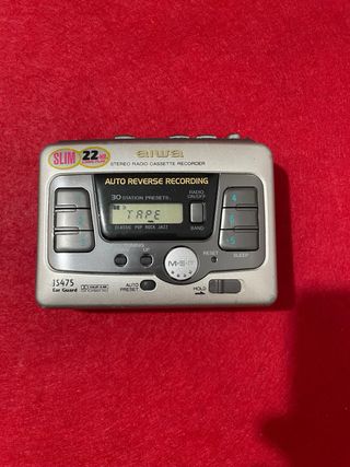 Reproductor portátil de cintas de casete,cuidado y funciona todo bien,rebobina y reproduce las cintas con buen sonido en ambos sentidos,tiene autoreverse,megabass,Groove y Radio FM digital con grabación de emisoras,utiliza dos pilas AA, entrego y se puede probar en Barcelona ciudad. - Diseño plateado. - Pantalla digital. - Botones de control. - Función Auto Reverse.