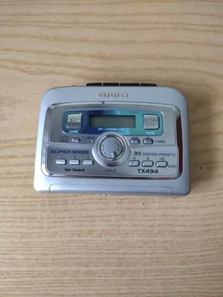Reproductor Radio Cassette Aiwa TX494 en color gris plata. Se encuentra en buen estado. - Radio con 30 presintonías. - Reproductor de casetes. - Función Super Bass.