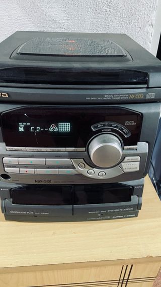 ojo tiene fallos en leer cd,s y cassetes Mini cadena de audio digital Aiwa NSX-522. - Reproductor de CD. 3 cargas - Doble pletina de cassette. - Sintonizador de radio FM/AM. - Entrada auxiliar y de video.