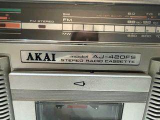 radio casette akai aj-420fs en excelente estado de funcionamiento y estético buenisima calidad de sonido le funciona tanto la radio como el radio cassette a la perfección muy pocas marcas de uso como se puede apreciar en las fotos ideal para coleccionistas funciona con pilas o enchufándolo a la red eléctrica no incluyo el cable se puede enviar o recoger en mano en Getafe.
