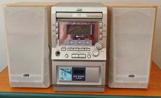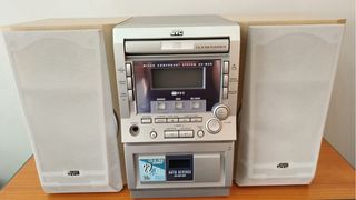 Minicadena musical JVC UX-M9R en buen estado. Incluye dos altavoces. - Sistema de audio microcomponente. - Reproductor de CD-R/RW. - Radio. - Reproductor de casetes.