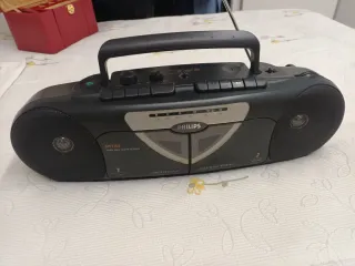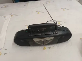 vendo radio cassette Philips años 90 perfecto estado de funcionamiento tanto la radio como las pletinas muy muy buen estado de conservación con apenas marcas de uso funciona a 120 W, 220 y 240 W con pilas o enchufado directamente a la red eléctrica no incluye el cable se vende tal cual se ve en las fotos ideal coleccionistas o decoración se entrega en mano en Getafe, preferiblemente, pero también se puede enviar
