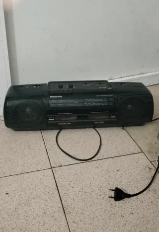 Equipo de sonido vintage con radio y reproductor de cassette. Ideal para coleccionistas o amantes de lo retro. - Diseño compacto y portátil. - Antena extensible para mejor recepción de radio. - Ecualizador gráfico para ajustar el sonido.