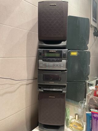 Cadena musical AIWA ràdio, 2 cassettes, tocadiscos y 2 altavoces