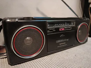 Vendo radio cassette portátil SANYO modelo MS922K, fabricado en Japón. Un clásico de los años 70-80, ideal para coleccionistas o amantes del sonido retro. Funciona tanto con corriente (AC 120/200/240 V, 50/60 Hz, 17 W) como con 6 pilas tipo D (9 V). Diseño sólido y elegante, típico de la época Sanyo. Fabricación japonesa de gran calidad. Ideal para decoración vintage, restauración o uso nostálgico. Estado: buen estado Enciende y funciona correctamente / o / Necesita revisión, se vende como pieza vintage. Se entrega limpio y bien protegido. $ Precio: 160e Entrega en mano o envío a