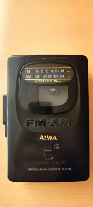 Reproductor de radio y cassette AIWA T210A. - Función Auto Reverse. - Super Bass. - Sintonizador de radio FM/AM. La radio se escucha pero muy flojita El reproductor de cassettes da vueltas con el play pero ahora no tengo ningún cassette para probarlo.