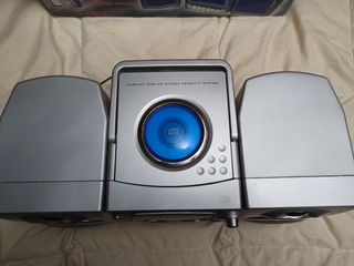 CD,cinta,radio portable a pilas o con cable. le falta la rueda en el volumen pero funciona igual.