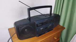 Radiocasete con reproductor de CD y radio. - Diseño compacto y portátil. - Panel de control con botones y dial. - Asa para facilitar su transporte. Cintas para cassettes Radio AM/FM