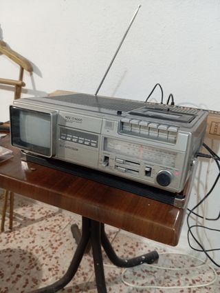 Radiocassette con televisión incorporada NEC CT6000 en buen estado. - Radio AM/FM. - Reproductor de casetes. - Pantalla de televisión pequeña. -retro equipo de radiomuseum.