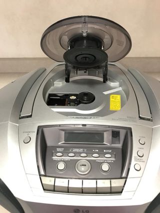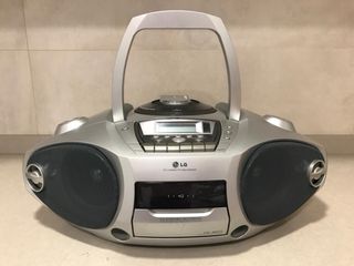 Radio cassette portátil Scott en color gris plata. Está en buenas condiciones, aunque presenta algunas señales de uso. - Reproduce CDs y casetes. - Incluye radio FM. - Dispone de función de grabación.
