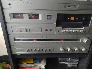 Minicadena vintage de la marca Intron, un centro musical completo para disfrutar de tu música. - Incluye tocadiscos. - Doble pletina de cassette. - Radio AM/FM. - Ecualizador gráfico. - Conexión para auriculares.